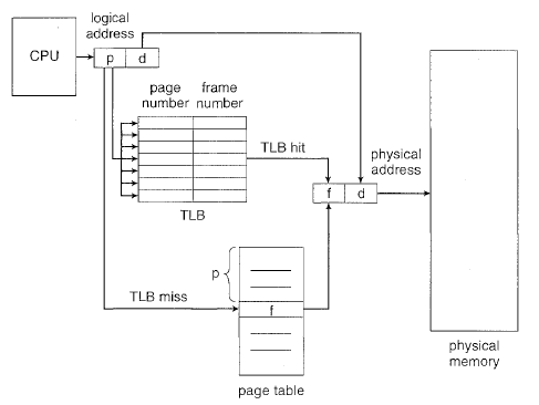 메모리에 접근 할때 마다 메모리의 Page Table을 한번 거쳐야 되기 때문에 Contiguous Allocation방식에 비해 속도 저하의 원인이 될 수 있다. 그래서 Memory가 아닌 TLB(Table Lookaside Buffer)라는 별도의 Cache를 사용한다.