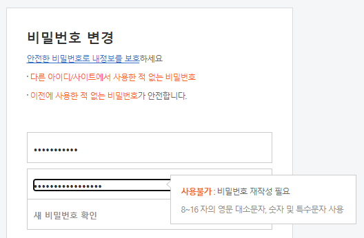 16자는 말도 안되게 짧은 길이이다. 이렇게 되면 안전한 비밀번호를 사용하고 싶어서 긴 비밀번호를 사용하는 사람은 네이버만을 위한, 상대적으로 취약한 짧은 비밀번호를 새로 고안해내야 한다.