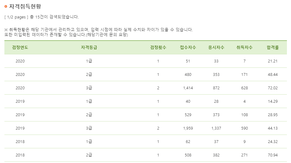 응시자수를 보면 꾸준히 수요와 공급이 있음을 알 수 있다. 그리고 소개하는 3개 자격 요건 중 가장 취득이 어려운 자격증이기도 하다. 기술을 평가하고자 하는 자격임에도 1급 응시 요건에 기술사는 제외되어 있으므로 Pass. 3급 자격증은 기술보증기금 입사 가점용으로도 많이 취득하는 것으로 알려져 있다.