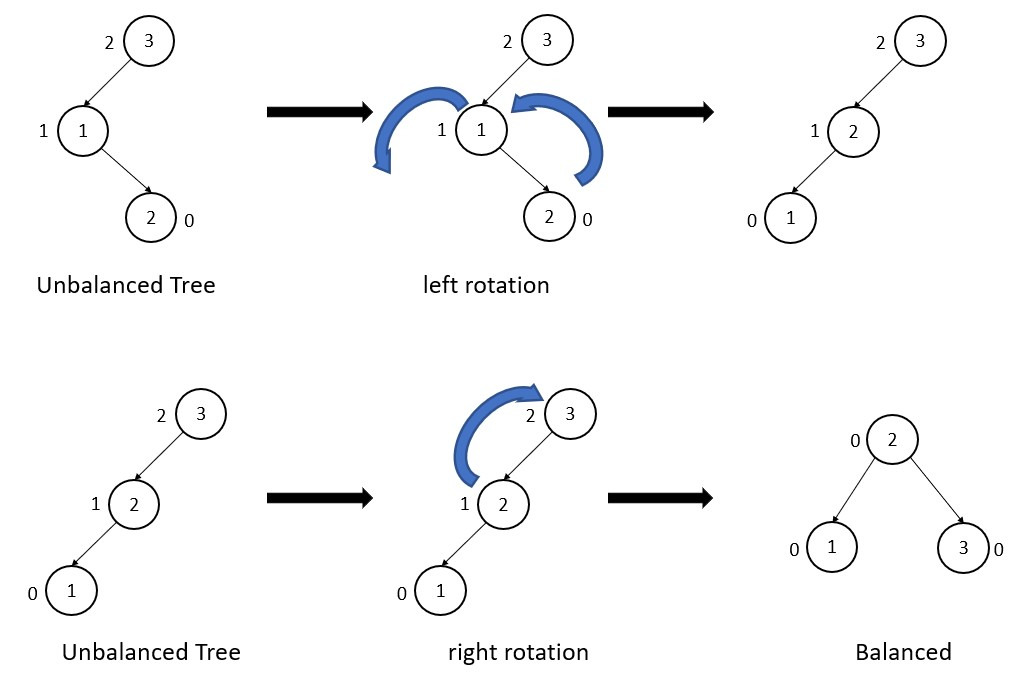 기존에, 우리는 아래와 같은 로테이션을 공부하였다. (이 부분은 그냥 훑고 지나가자) 오른쪽에 있던 2가 왼쪽 위로 올라가면서, 1이 왼쪽 아래로 내려가는 상황을 Left Rotation이라고 부른다. 그리고 그 반대는 Right Rotation이다.